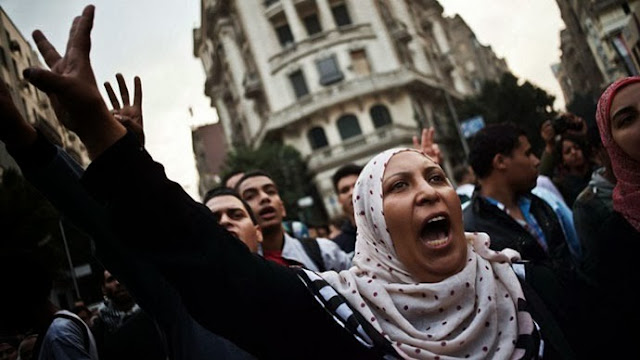 Polis Mesir menahan 2 penunjuk perasaan wanita di Kaherah, selepas meriam air polis untuk menyuraikan 2 bantahan oleh berpuluh-puluh aktivis sekular anti-kerajaan, pelaksanaan pertama pasukan keselamatan 'undang-undang baru kontroversi melarang protes diadakan tanpa permit daripada pihak berkuasa. Selepas ditahan di sebuah protes Kaherah, 14 wanita, sebahagian daripada penyokong demokrasi paling menonjol Mesir, dipukul, ditarik oleh rambut dan bertimbun ke dalam van polis, diambil pada perjalanan waktu malam jahat melalui padang pasir di mana mereka akhirnya dibuang oleh jalan, pengiraan semula wanita itu. Penyalahgunaan, mengingatkan pada era Hosni Mubarak, menunjukkan bagaimana berkuasa baru Mesir yang disokong tentera menjadi lebih berani dalam mendiamkan perbezaan pendapat, mengeksploitasi memerangi Islam dan perpecahan di kalangan aktivis sekular. (Photo: AP - think IN pictures @1WORLDCommunity)